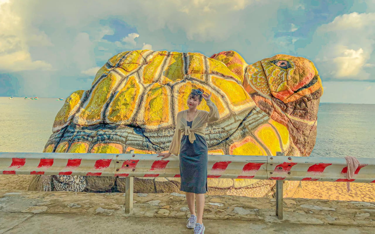 - Check-in tại tượng cụ rùa đá khổng lồ